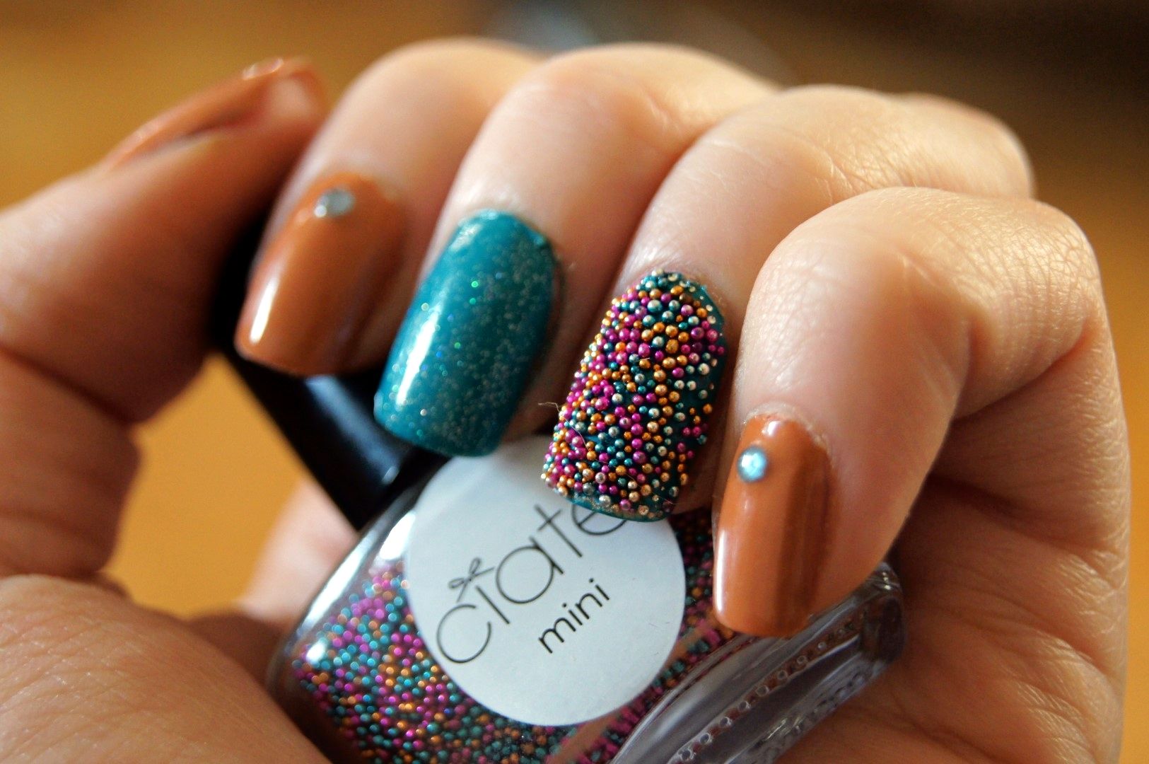 First up is kinda colorful mani with caviar beads, glitter, rhinestones and fun shades. I don't really know where I was going with it but it looks kinda fun. To me, at least.