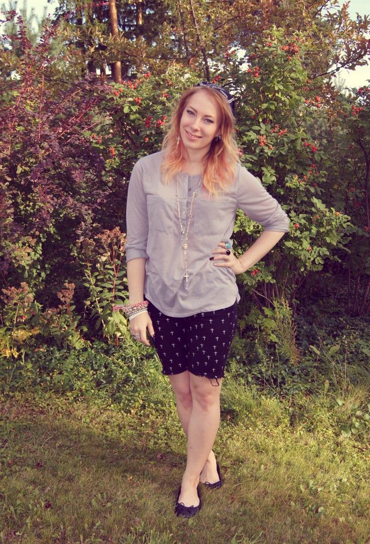 Very casual little look, I totally love the shorts here. And that shirt is super comfy!