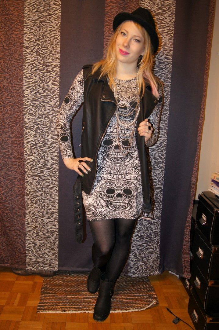 Yet another simple look with skulls and lots of black, but what can I say, that's what I like. That dress has been laying in my closet without any use for quite a while now, but finally I figured out what it looks nice with and actually dared to wear it. Hopefully this means I will actually wear this more during the spring and summer after finding the courage to put it on. :)