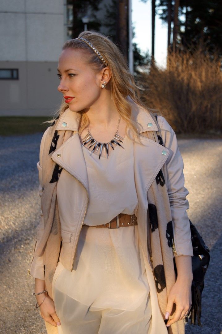 I personally really enjoyed wearing this look, maybe because it's quite a bit more feminine than the stuff I usually wear. I can't wait to wear that chiffon dress more or less on it's own, but for the time being it's a bit too cold for that. Also, I love that I can finally start living in my leather jackets again, they are seriously my go-to pieces which I couldn't go without.