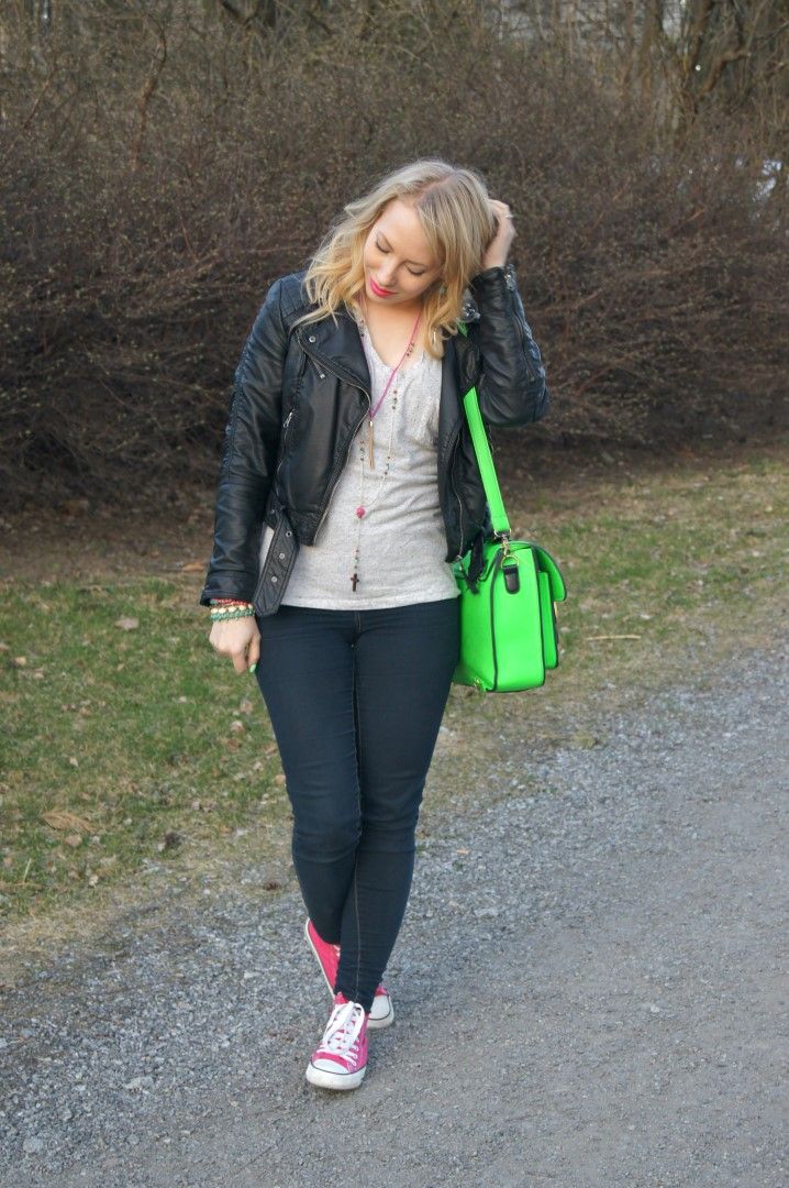 This is from tiny bit colder days, but this week it's going to be rainy so this is sort of appropriate anyway. Very basic look, just spiced up with the colorful details like the name of the post tells you.