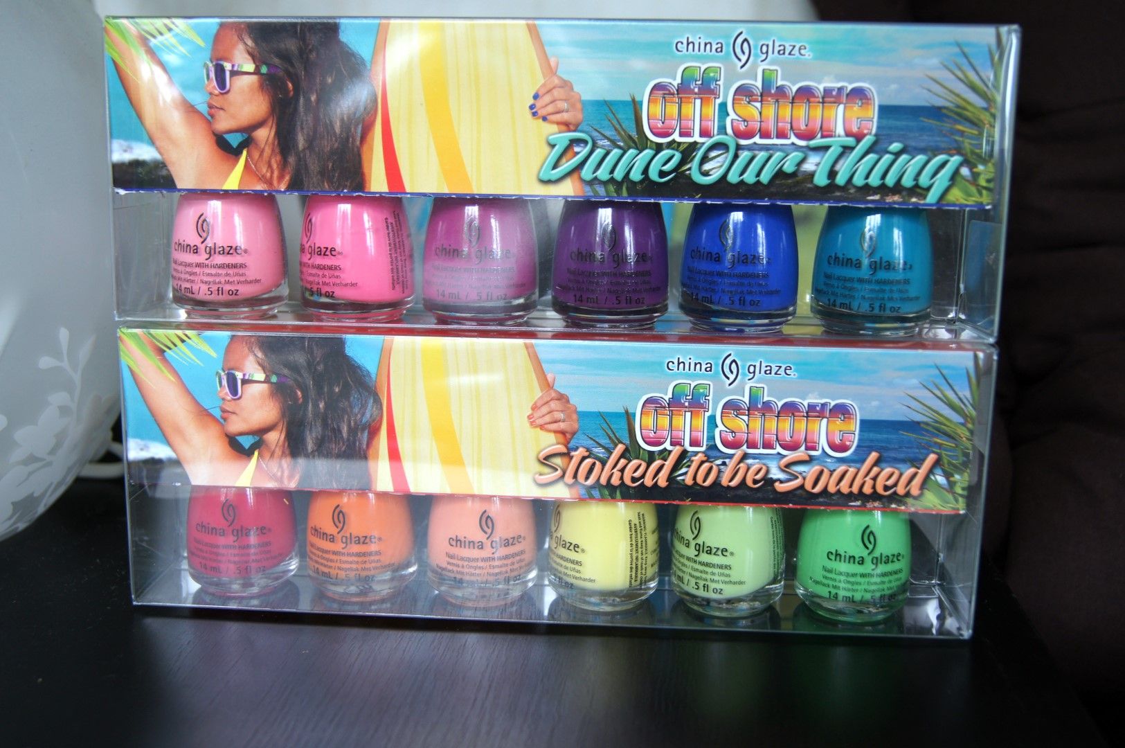 Today, however, I really wanted to rave about the China Glaze summer 2014 collection called Off Shore. I saw reviews of it around the web and had to have it as a big treat for myself when I got some summer money from work. I have never ordered a whole nail polish collection, and don't know when I can next do so as I will be a student for a while without any job, so this is sort of a "big" thing for me.