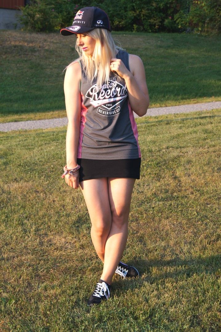 Skirt: H&M Top: Bershka Shoes: Puma Hat: Red Bull Store Necklace: Gina Tricot Bracelets: DIY, Accessorize
