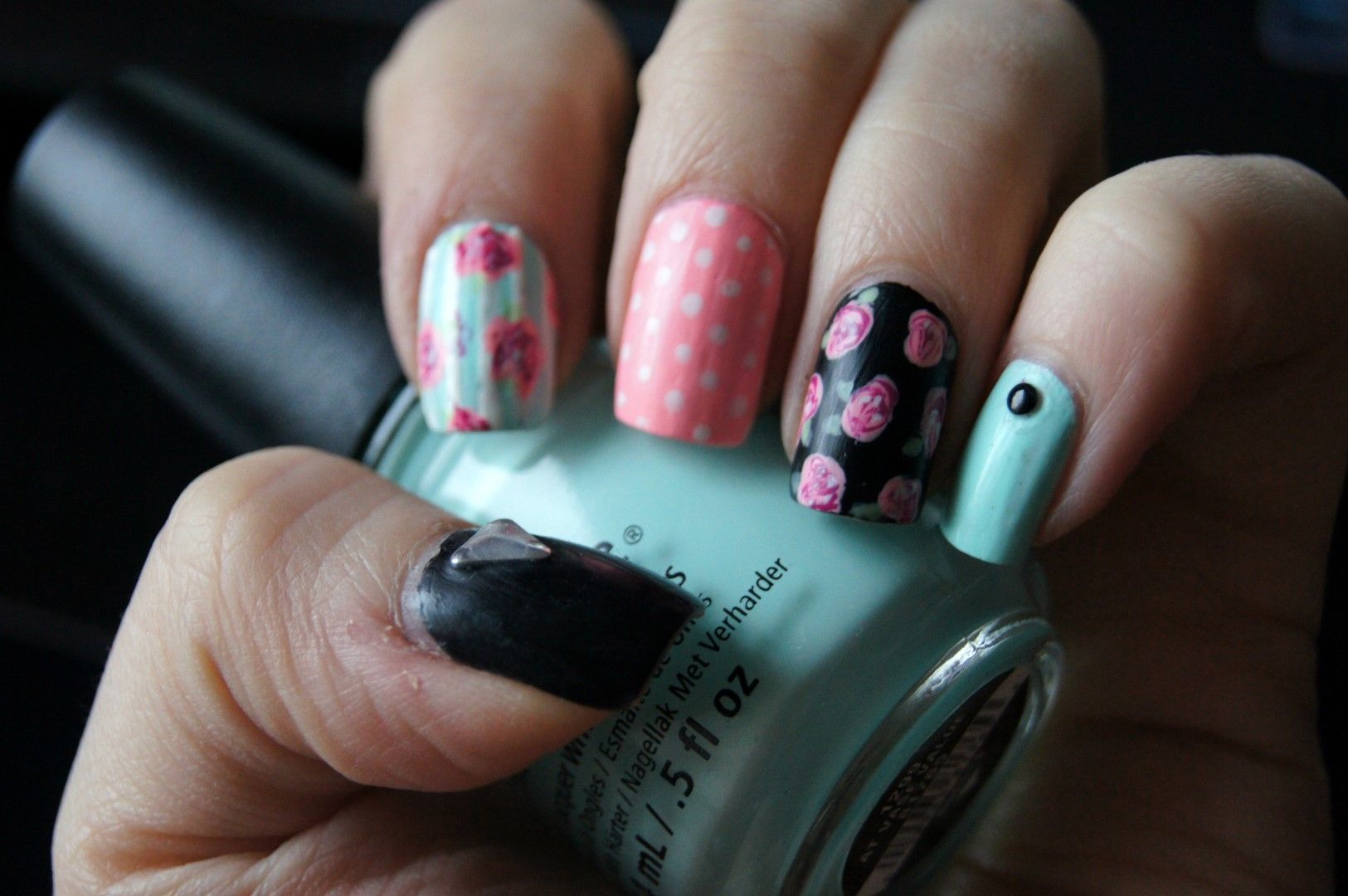 Florals, matte black, polka dots, stripes. These nails have a lot going on, but to me, that still isn't too much. I gotta say, I really, really loved this mani a lot.